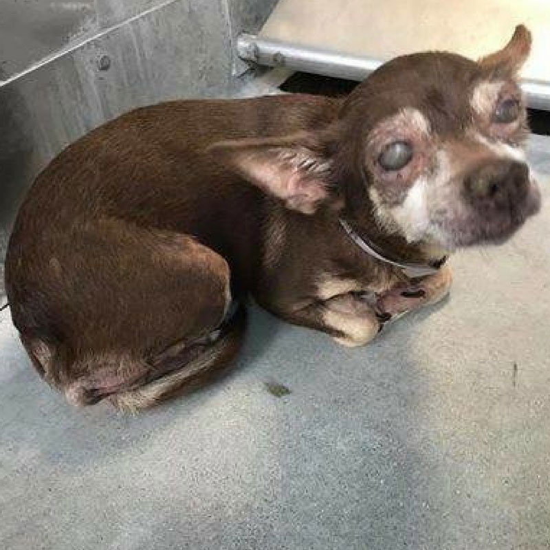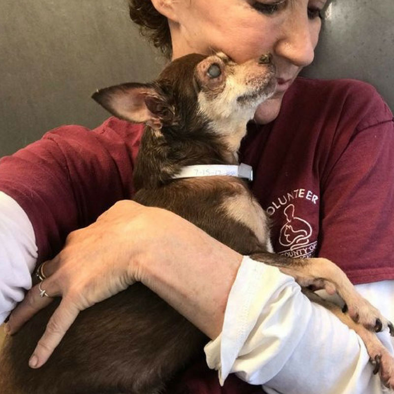 Jelly’s owner had given her to the Baldwin Park Shelter for unknown reasons. Just as any dog would struggle to go from a life at home to life at a shelter, Jelly had a hard time. Unfortunately, Jelly had a greater challenge than other dogs. She is elderly, blind, partially deaf, and struggles with numerous other medical conditions.