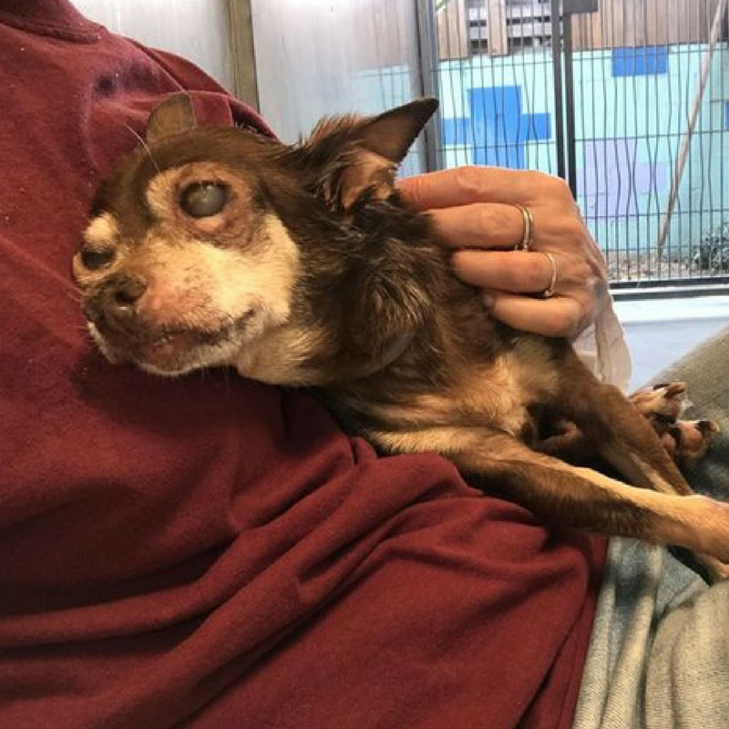 Elaine Seamans volunteers at the Baldwin Park Shelter in Los Angeles and runs the At-Choo Foundation – an organization dedicated to covering the medical expense costs of shelter dogs. When Seamans learned about Jelly, a 14-year-old Chihuahua mix, she fell in love.