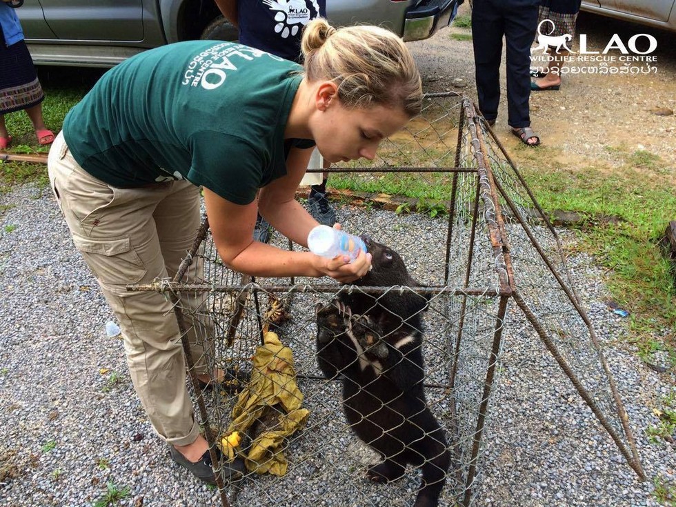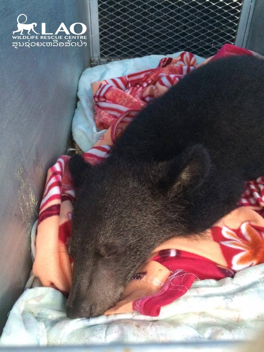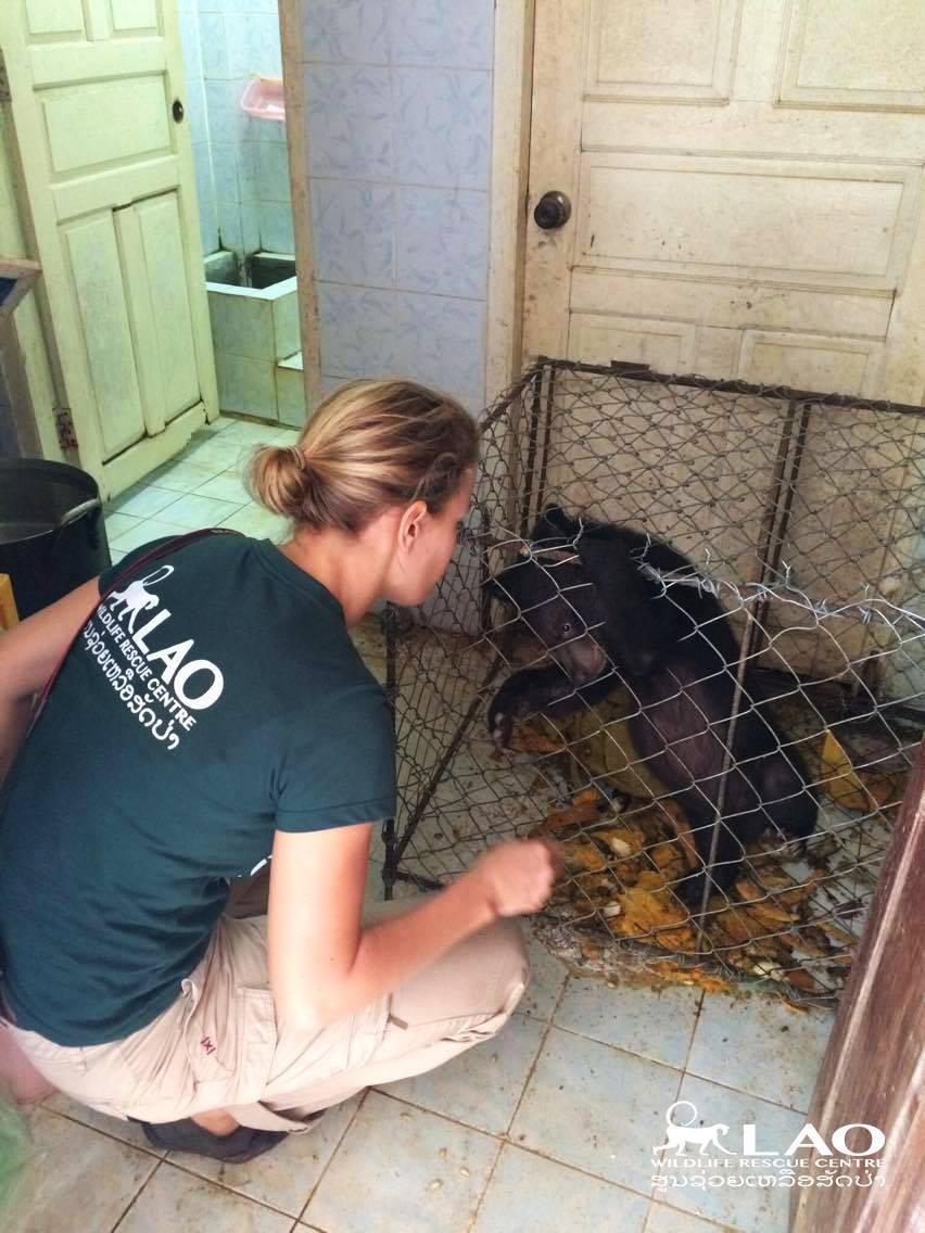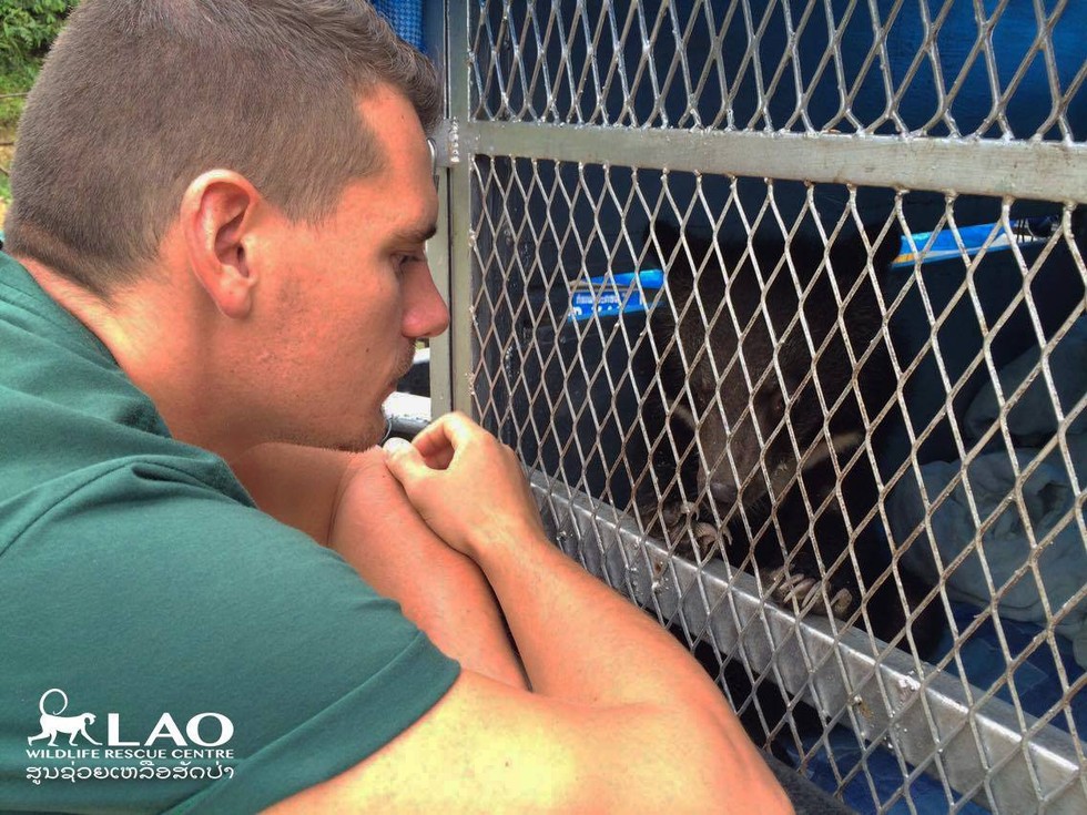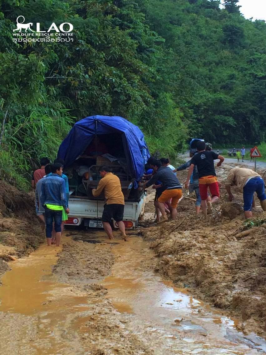 Sammy fortunately was rescued by wildlife authorities. They took Sammy from the illegal trafficking and called Lao Wildlife Rescue Center to help the bear cub. Sammy’s rescue became a very scary experience, as the weather was not on the rescue team’s side.