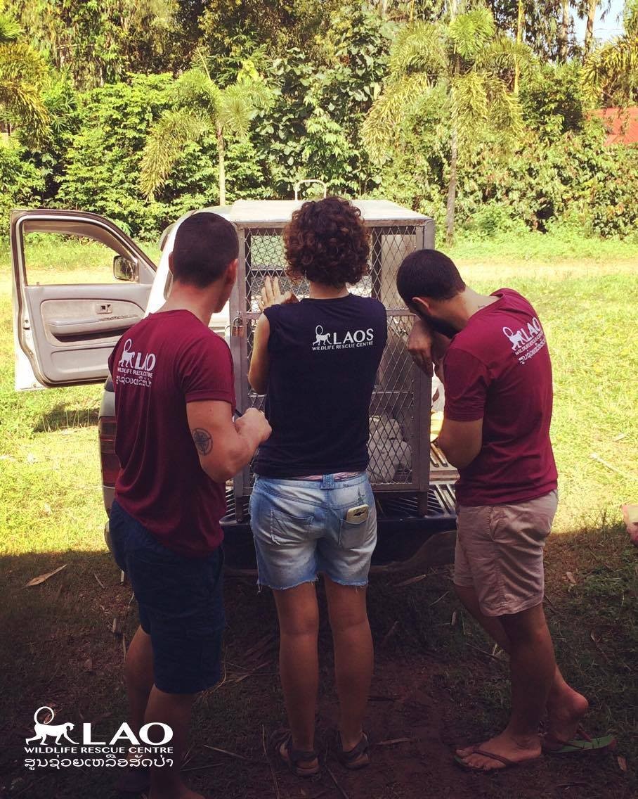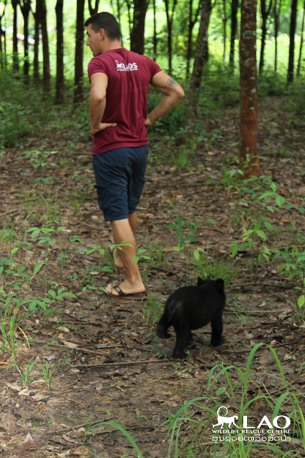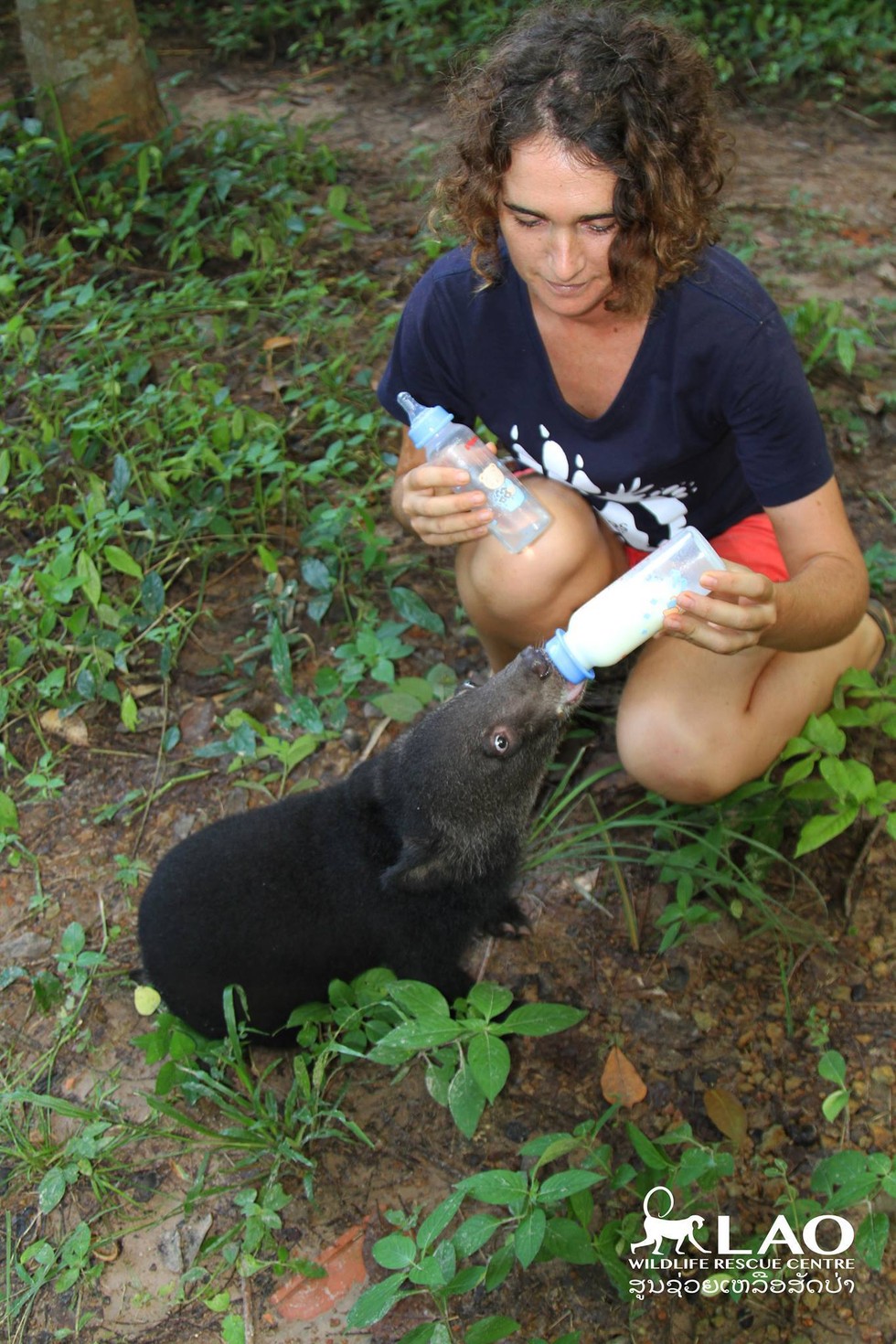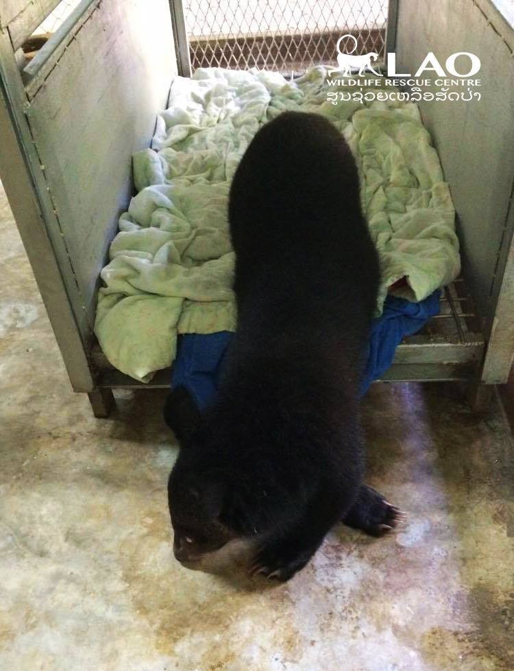 Sammy fortunately was rescued by wildlife authorities. They took Sammy from the illegal trafficking and called Lao Wildlife Rescue Center to help the bear cub. Sammy’s rescue became a very scary experience, as the weather was not on the rescue team’s side.