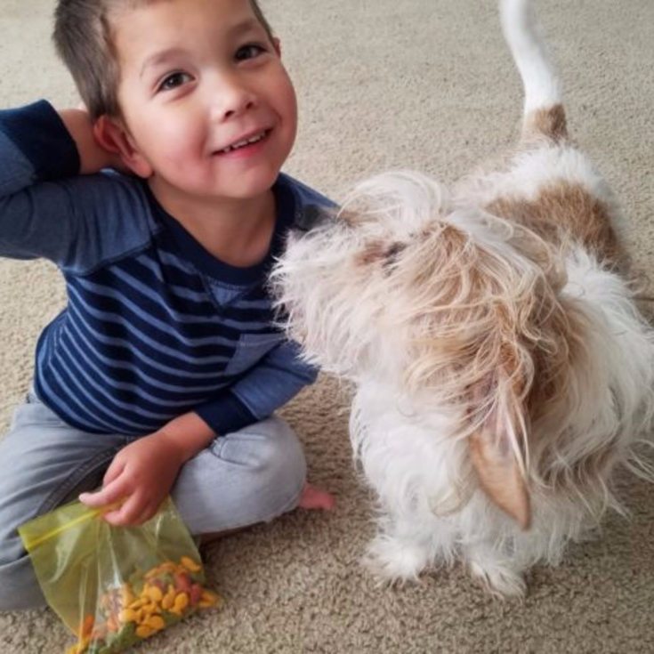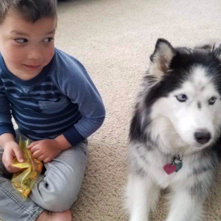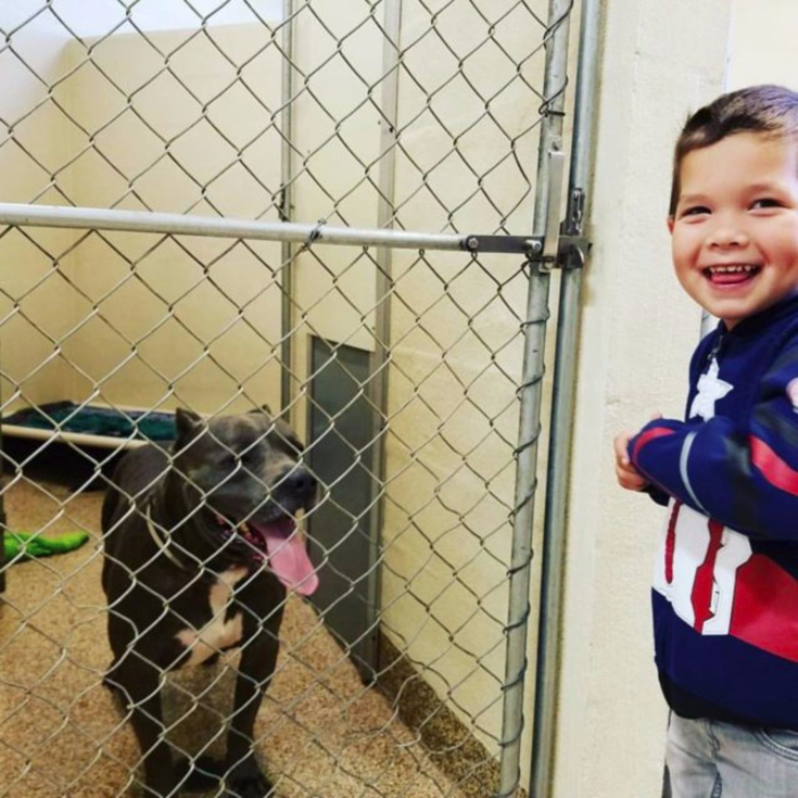 “Mommy! He’s big and chunky just like me!” Jaxton yelled out, running over to the cage door and petting Tank’s head through the bars.