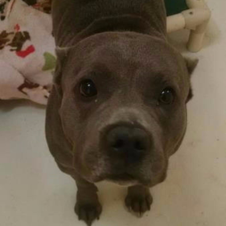 While heading to the desk to work on sponsoring Penelope, Jaxton saw another cute pit bull. This pit bull was known as Tank!