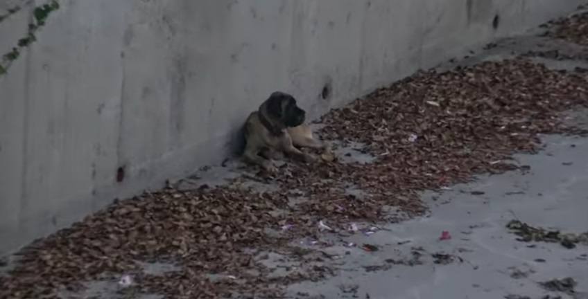 Hope for Paws received a call from a tourist explaining the sight of an injured dog on the L.A. River. The river opened into the ocean very close ahead, so there was great urgency to help the dog. The Mastiff, Tinkerbell, seemed clearly frightened and hurt.