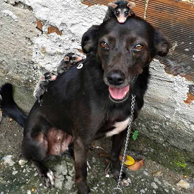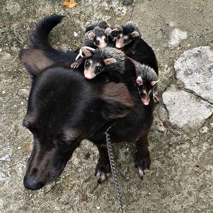 Orphaned Opossums Get A Second Chance At Life When This Dog Adopts Them.