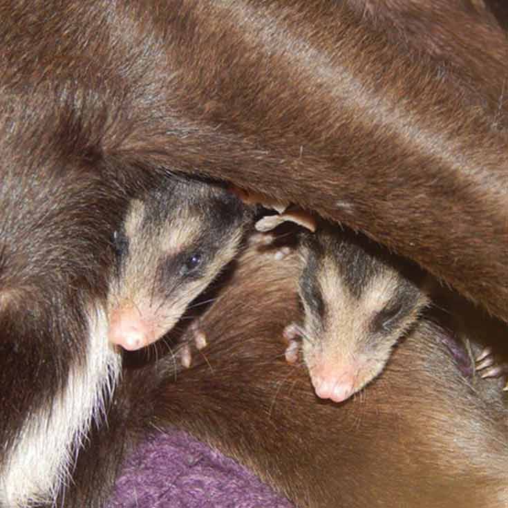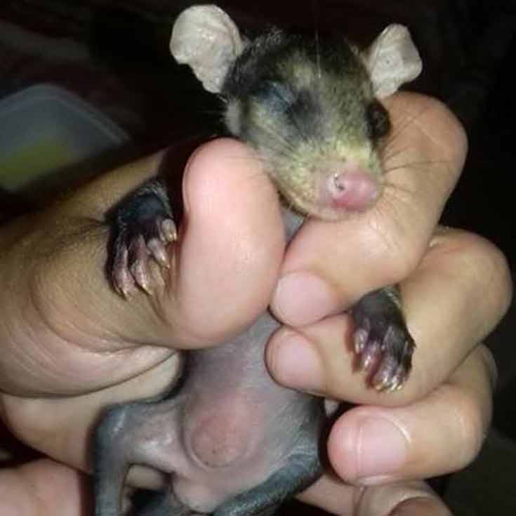 A month ago these opossum’s were left to die. But thanks to Prethina’s instincts, these once orphaned baby opossums are thriving with a new mommy!