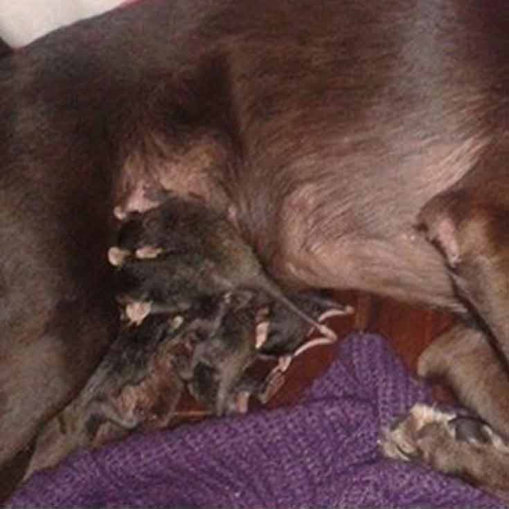 She worried she wasn’t giving the opossums the proper motherly attention they needed. That’s when Maldonado’s dog, Prethina, jumped right in and began caring for the baby opossums. Prethina even nursed the orphaned baby opossums!