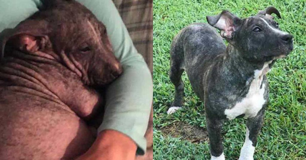 Heather Balzina spotted a hairless 5-month-old pitbull puppy at the shelter in Jacksonville, North Carolina and knew she had to help her.