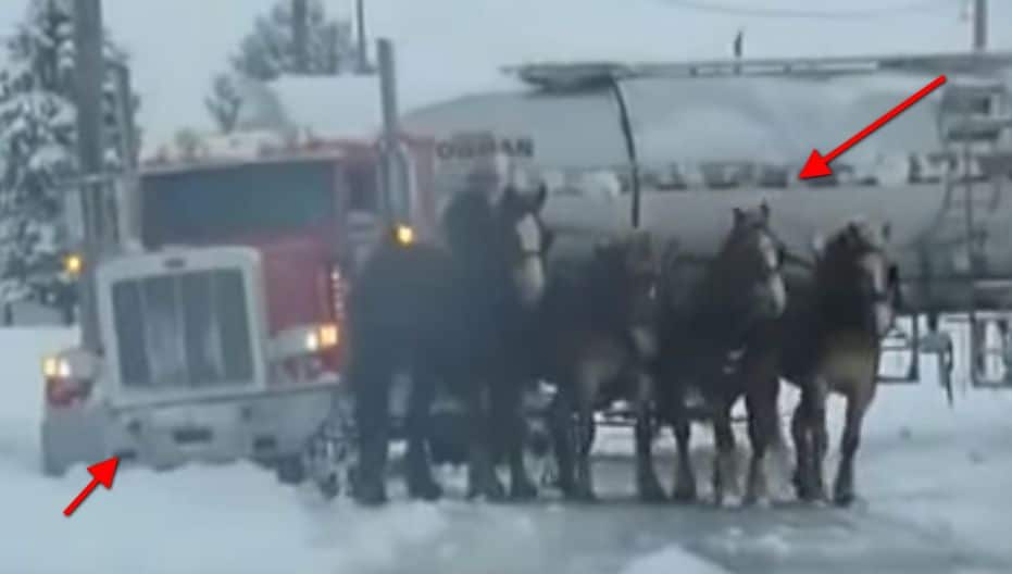 When This Semi Truck Gets Stuck In The Snow, Watch What These Horses Do. Unbelievable!