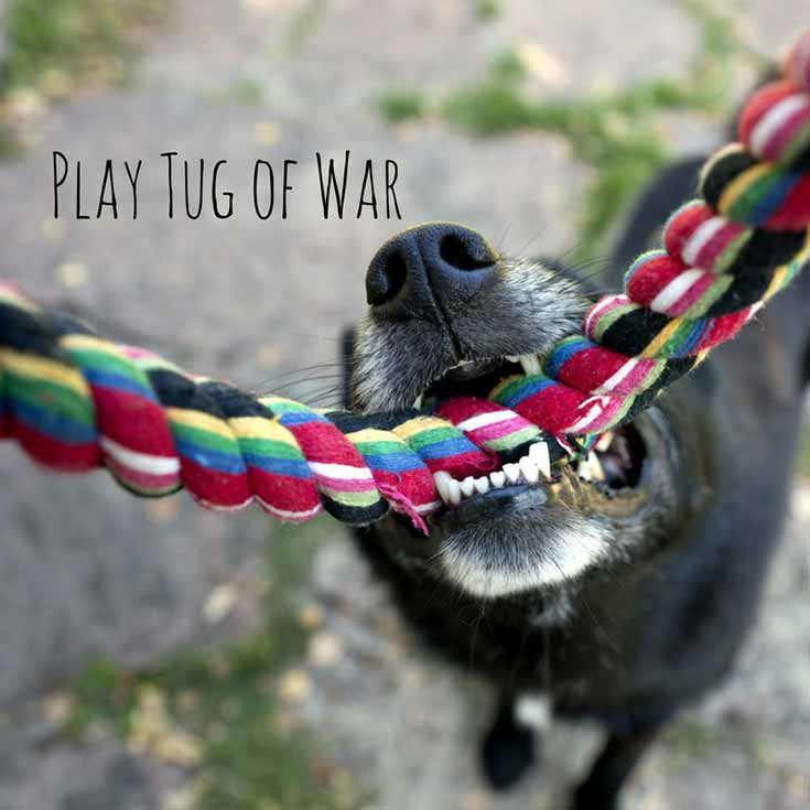 Dogs love getting to tug. Play competitively with your dog and see who wins! If you have a small dog, you may want to cut them a little slack (you’ll have a little bit of an advantage). If you have any old clothes, you can make a DIY tug toy!