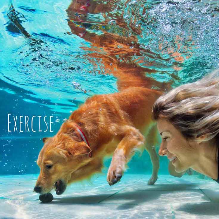 Whether you are going for a run or looking to do a daily exercise routine, you can add your dog into the mix! If your dog is small enough, you can use him for weights during squats. If you want a workout for the two of you, create a circuit that you can both utilize. Jumps, sprints, and obstacles can be a fun challenge for both human and pup. For dogs that love to swim, a routine in the water can be great for everyone too!