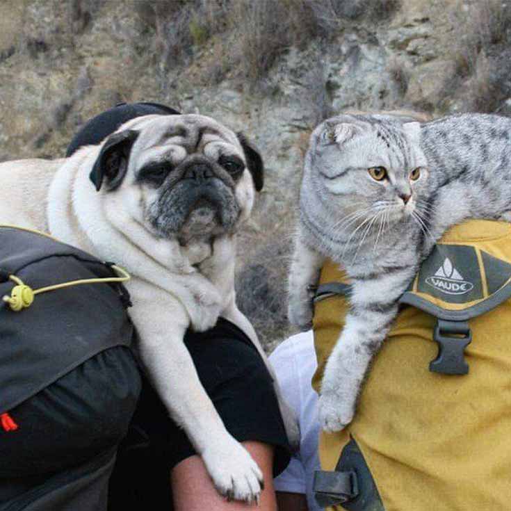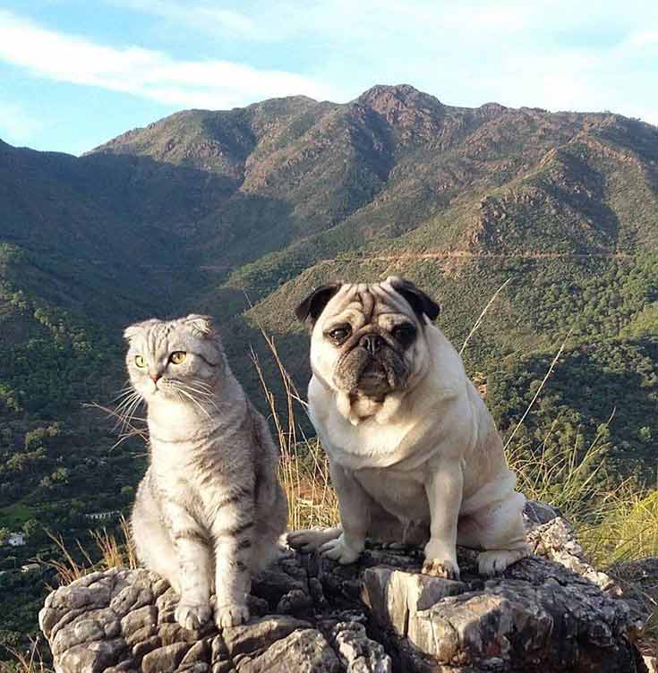 Bandito and Luigi are an unusual pair that can be seen doing some pretty unusual things. This pug and cat have gone hiking many miles across Spain.