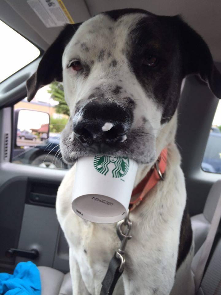 Each Tuesday, one of the shelter dogs is taken out to the local Starbucks for a special treat. Â Starbucks secret menu features a âpuppuccinoâ – looks like good coffee isnât just for humans!