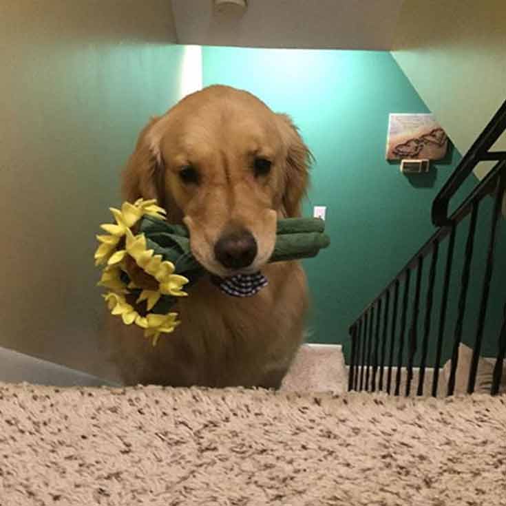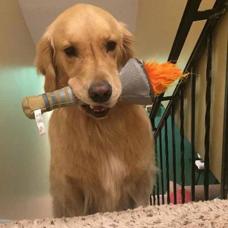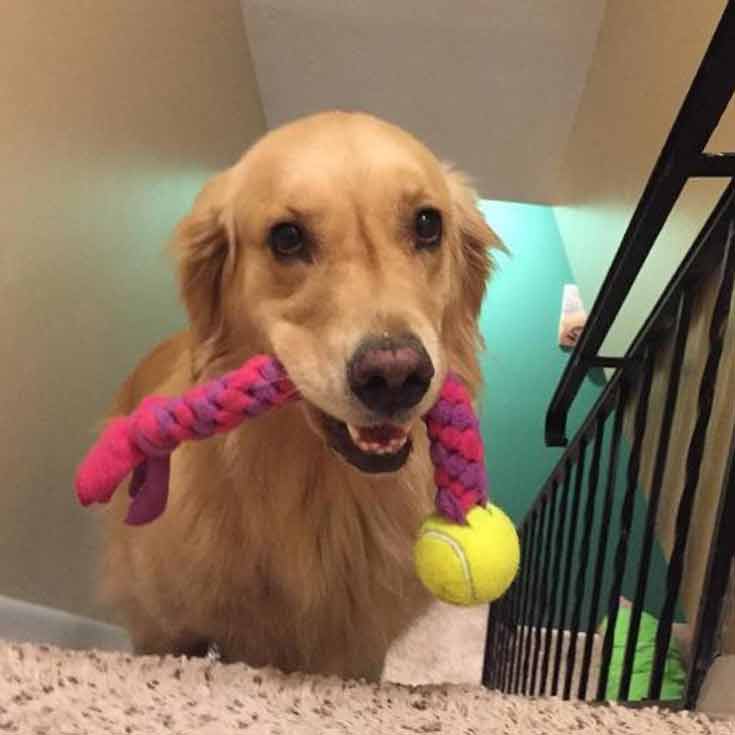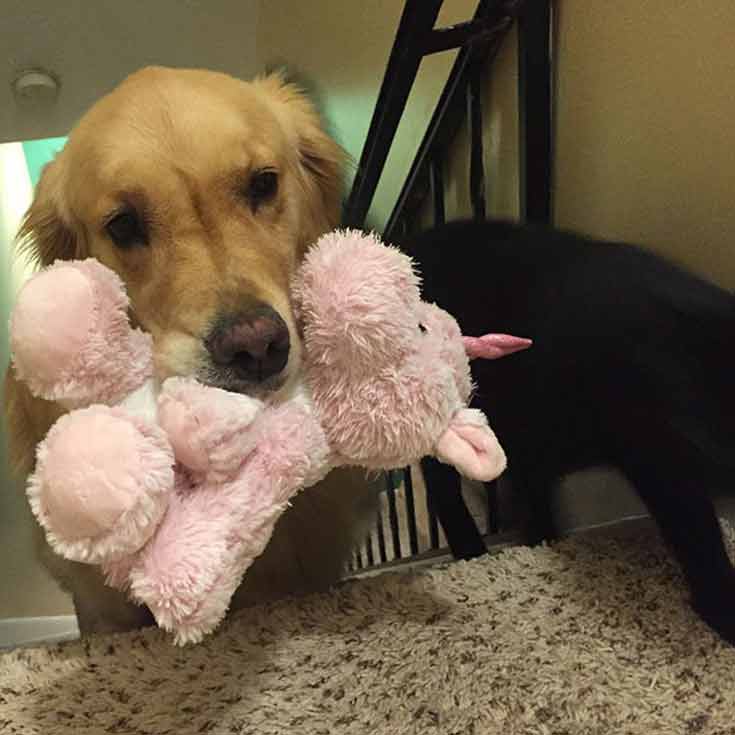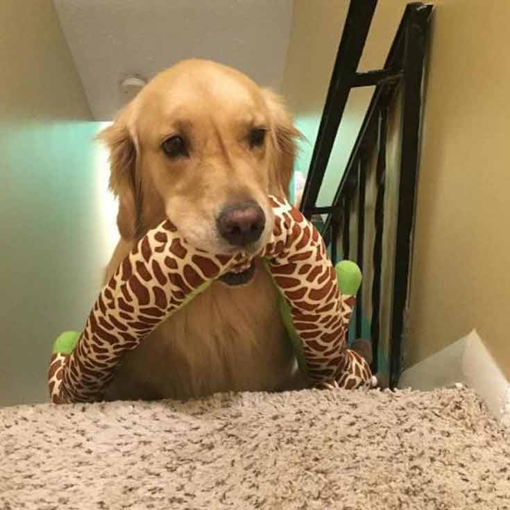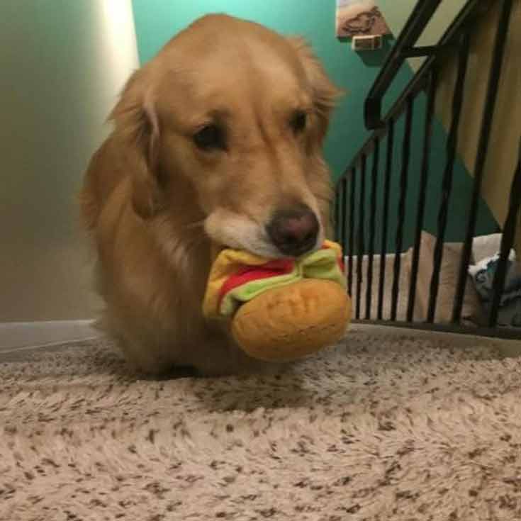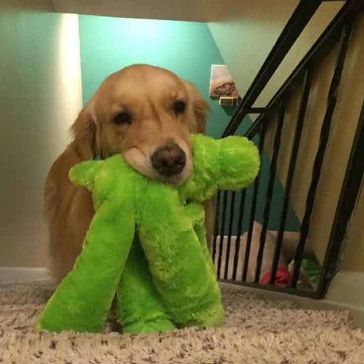 Her family has been taking pictures of Mojito’s toy carrying process, as it is absolutely adorable.