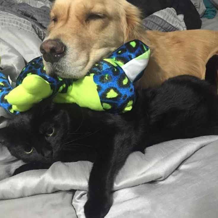 Playtime never ends for Mojito – sometimes she even lets the cat in on the fun too.