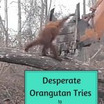 The helpless orangutan tried perilously to save the only home he has ever known.
