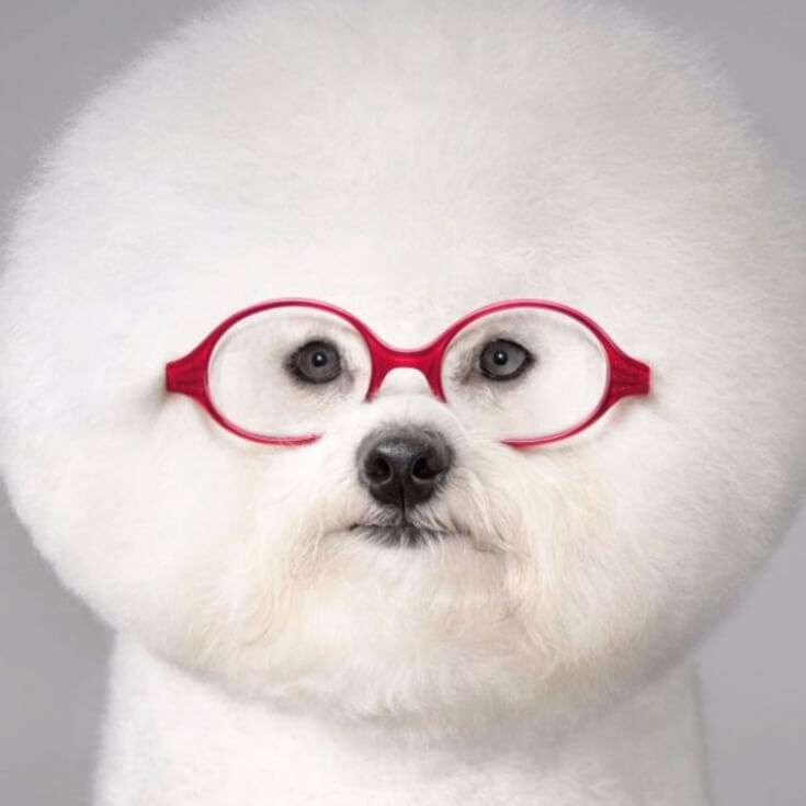 This is a Bichon Frise dog breed (pronounced BEE-shawn FREE-say; the plural is Bichons Frises). A small dog breed with a ton of love to give. They are cheerful and utterly adorable. They have a fluffy white coat and beautiful black eyes and nose.